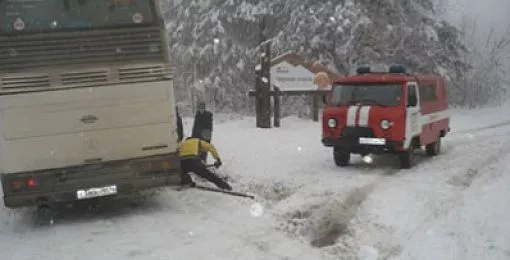 Примерно на половине пути рейсовые автобусы, перевозившие ребят, застряли в снегу. Туристам пришлось обратиться за помощью к спасателям, - сообщает АН "ЧелябинскСегодня". На место тут же отправились сотрудники службы пожаротушения отряда, штабной и рукавный автомобили 45-й ПСЧ, а также «Урал-Вахта».