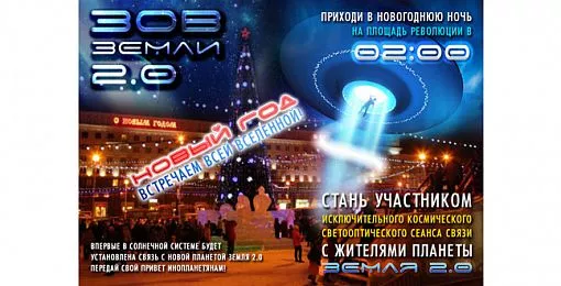 Уважаемые челябинцы и гости города, россияне и жители планеты! Мы приглашаем вас принять участие в сеансе межгалактической связи и вписать своё имя в историю. Сеанс связи состоится в Новогоднюю ночь с 31 декабря 2015 года на 01 января 2016 года в 02:00 на Площади Революции (г. Челябинск). Сеанс продлится ровно 15 минут! |