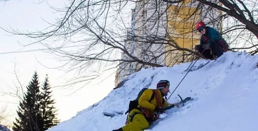 Полный антураж альпиниста: каски, очки, тросы, альпендштоки, «кошки» на обувь и решимость в глазах – все это понадобилось для того, чтобы снять ролик. Скалолазы обеспечили безопасность веревочной связкой и страховали друг друга на восхождении, как будто на самом деле покоряют неприступную гору. Под конец на челябинский сугроб взобрался ребенок.