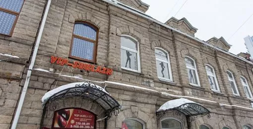 На окнах этого заведения изображены женские силуэты, а под ними можно увидеть неоднозначные надписи (Erotic-music, Private-zone и так далее). И все это находится в доме, являющимся объектом культурного наследия Челябинской области.