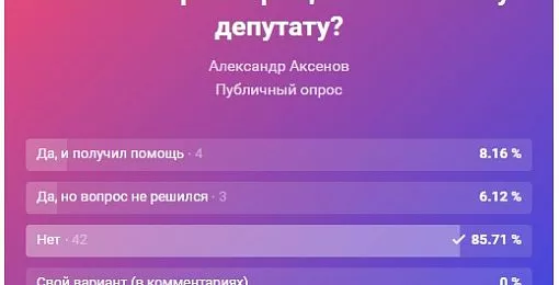 Буквально несколько дней назад мы провели опрос наших читателей по поводу посещения депутатских приемов. Выяснилось, что абсолютное большинство, то есть более 85 процентов копейчан, никогда не были на приеме у своего депутата.