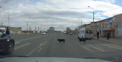 Дворняги Челябинска переходят дорогу по «зебре». Видео