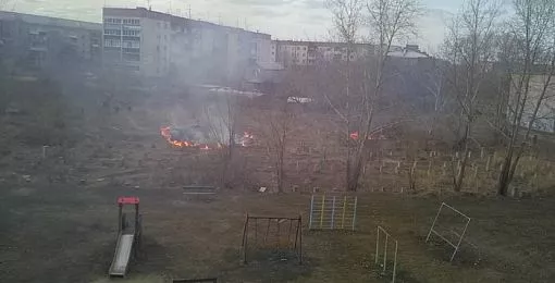 Дым заполонил квартиры в ближайших домах. Ветер гонит огонь на школу и детскую площадку. Пожарных уже вызвали.