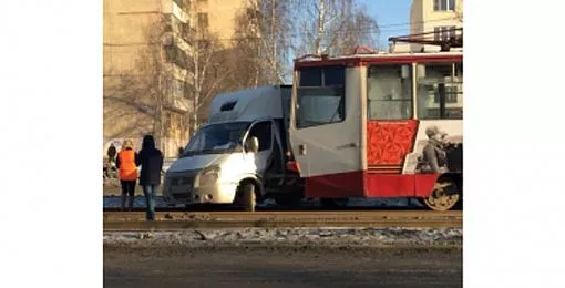Грузовая «Газель» неожиданно вылетела прямо на трамвайные пути, по которым в это время двигался трамвай. Произошло столкновение.