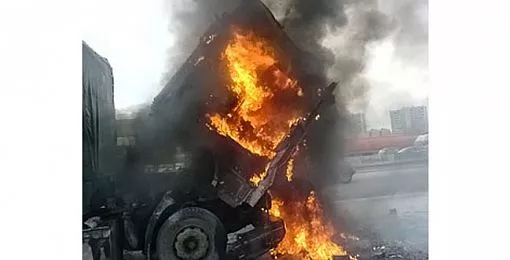 Грузовик загорелся на Копейском шоссе