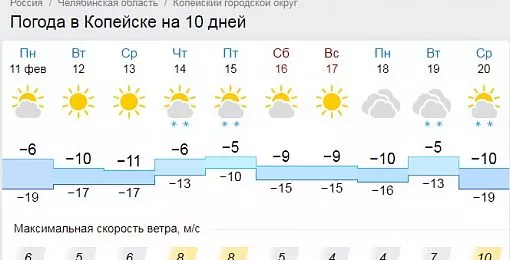 Согласно прогнозу погоды с сайта Гисметео в Копейске ожидается теплая и малоснежная неделя. Температура воздуха после минувших 30-градусных морозов поднимется днем до комфортных 5-10 градусов мороза, в ночные часы лишь изредка опускаясь до 17-19.