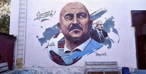 Главного тренера сборной России по футболу нарисовал художник-граффитист Тимур Абдуллаев.