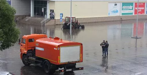 Поступают сообщения с фото о затопленных дорогах в Челябинске. В Копейске спецтехника откачивает воду из огромной лужи возле ТРК Славы. На площади Красных Партизан упало дерево.