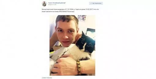 В выходные к нам обратилась наша читательница, с просьбой разместить информацию о розыске её брата, Анатолия Зенова 1994 года рождения, который 10 февраля 2017 года ушел из дома и не вернулся.