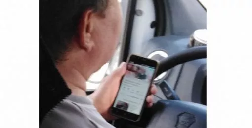 В соцсетях появились снимки, на которых можно увидеть водителя маршрутки № 50 со смартфоном в руках.