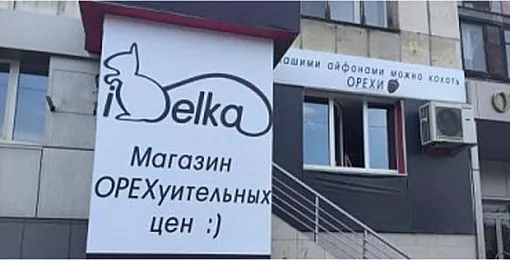Нестандартная реклама появилась на одном из магазинов Челябинска. На плакате изображена белка и слоган: «Магазин ОРЕХуительных цен».