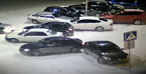 Участниками аварии стали два автомобиля МАЗДА 3. На видео заметно, что один из водителей, выезжая задом, столкнулся с другим припаркованным авто.