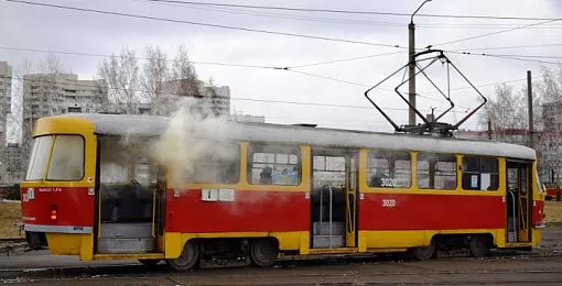 20 сентября в челябинском трамвае произошел пожар. Электропроводка вагона загорелась из-за короткого замыкания, - сообщает telefakt.ru.