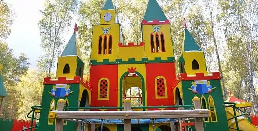 Детский городок площадью 550 кв.м. принял облик сказочного замка. По своим размерам он самый большой в регионе и пятый в стране. Дети от 6 до 12 лет могут в компании с фигурками сказочных зверей могут резвиться на многочисленных горках и турниках, лестницах и в лабиринтах.