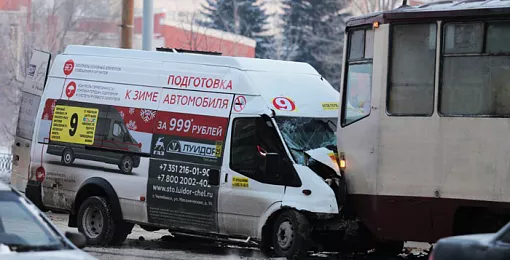 В Челябинске столкнулись маршрутка и трамвай. Есть пострадавшие