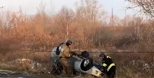 В Копейске перевернулся и загорелся автомобиль