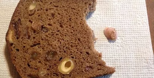 Женщина рассказала в соцсетях, что в этом хлебе, согласно рецепту, есть орехи. И сначала она, откусив кусочек, решила, что ей попался очень твердый орех. Но достав его изо рта, она с изумлением увидела, что это обломок ногтя с французским маникюром.