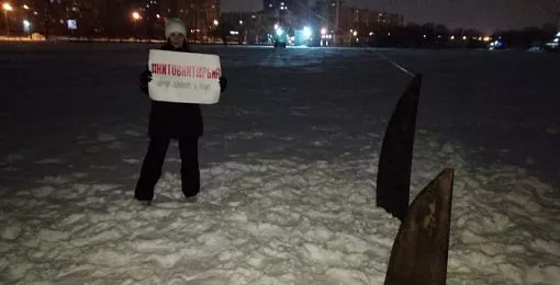 Александр рассказал, что эту акцию он придумал несколько недель назад. Черные плавники, которые он установил в лед озера рядом с "путинским пляжем", олицетворяют борьбу за свободу китов.