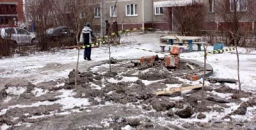 Подтопление двора началось в конце сентября. Жительница дома № 14 Вера Гасилина, заметив воду на детской площадке, обратилась в МУП «Горводоканал», где ей ответили, что устранением подобных аварий они не занимаются. Аналогичный ответ Вера Николаевна услышала в обслуживающей компании ООО «Копижилсервис». Два месяца она пыталась добиться вразумительного ответа хоть от одной из организаций.