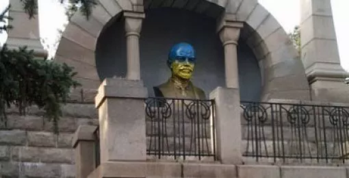 Памятник Ленину опять раскрасили в цвета флага Украины