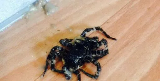 «вот такая фигня размером примерно 5 см выползла из-под холодильника. от куда взялся не пойму( соседи не держат. Боюсь ужасно теперь» (орфография и пунктуация автора сохранены). К тексту приложено фото, на котором изображено насекомое, очень напоминающее тарантула.
