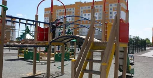 Надо сказать, строительство микрорайона идет полным ходом. Помимо домов, здесь строится современный детский сад. Оборудованы две спортивные площадки и детские городки.