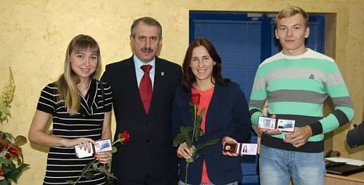 Из рук министра Леонида Одера копейчане Мария Перескокова и Никита Стрежнев получили почетные знаки и удостоверения мастеров спорта России по велоспорту на шоссе, а тренер-преподаватель СДЮСШОР №2 Дарья Вотинцева — знак и удостоверение судьи всероссийской категории.