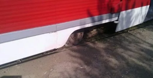 Трамвай, двигавшийся по маршруту №3, столкнулся с бетономешалкой. От удара передняя часть пассажирского транспортного средства сошла с рельсов.