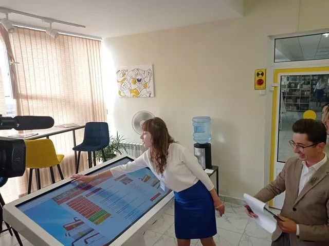 Гости осмотрели все помещения библиотеки и отметили прекрасный дизайн обновленных помещений, богатый книжный фонд и уникальные возможности, которые открывает перед читателями новое интерактивное оборудование библиотеки.