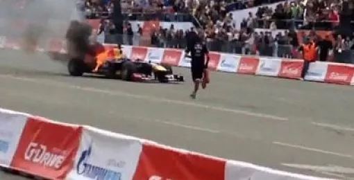 Правда, этот самый болид неожиданно загорелся во время шоу, прямо на площади Революции. Это произошло во время показательного заезда. Пилот не сразу заметил пламя – он успел проехать порядка 200 метров в автомобиле, объятом огнем. Почти сразу к болиду подбежали члены команды Infiniti red bull racing, которые потушили огонь и помогли пилоту выбраться. Британский гонщик Алекс Линн не пострадал, - сообщают СМИ. И уже через 30 минут он выехал на трассу на другом болиде, специально подготовленном для шоу.