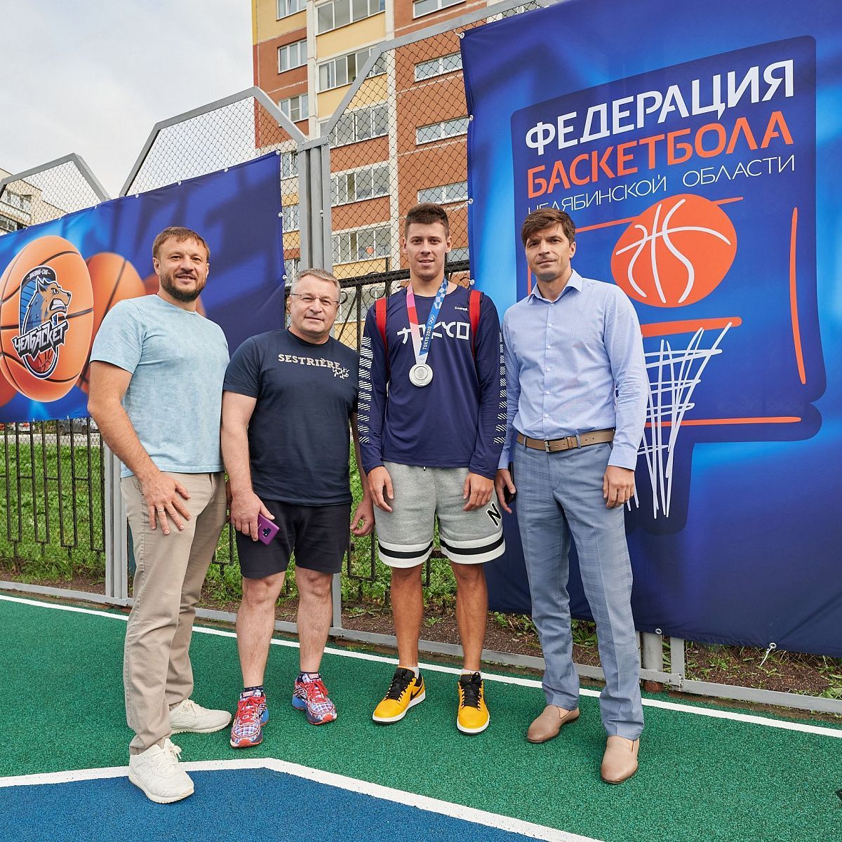 Среди почетных гостей на новой баскетбольной площадке были: Начальник управления по физической культуре, спорту и туризму Администрации города Челябинска Максим Клещевников, Серебряный призер Олимпиады в Токио по баскетболу 3х3 Кирилл Писклов и Президент Федерации баскетбола Челябинской области Николай Сандаков.