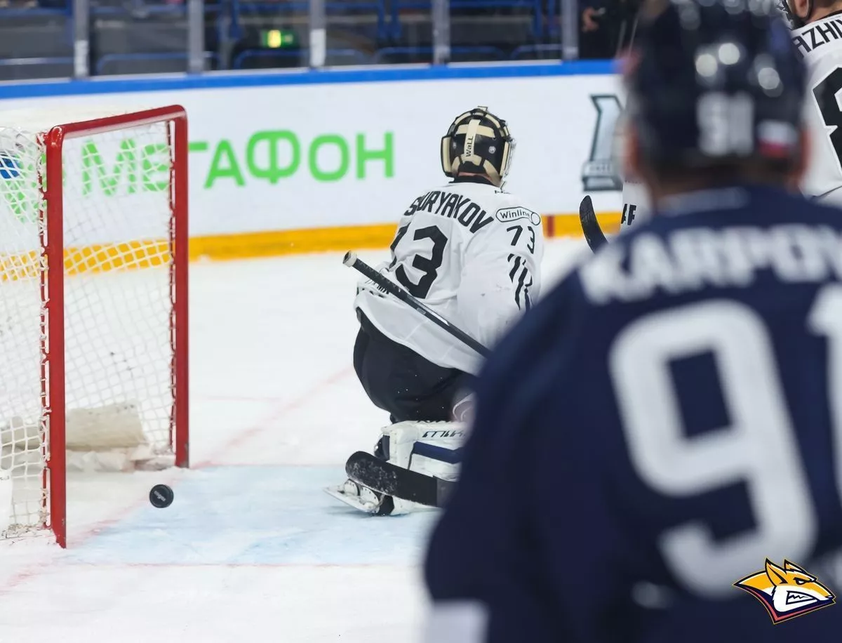 Две минуты спустя капитан «Металлурга» счет сравнял – Егор Яковлев броском от синей линии поразил ворота соперника, благодаря рикошету – 1:1.