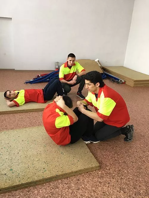 Затем в спортзале спортшколы №3 студенты демонстрировали спортивные навыки, подтягиваясь, отжимаясь и прыгая в длину.